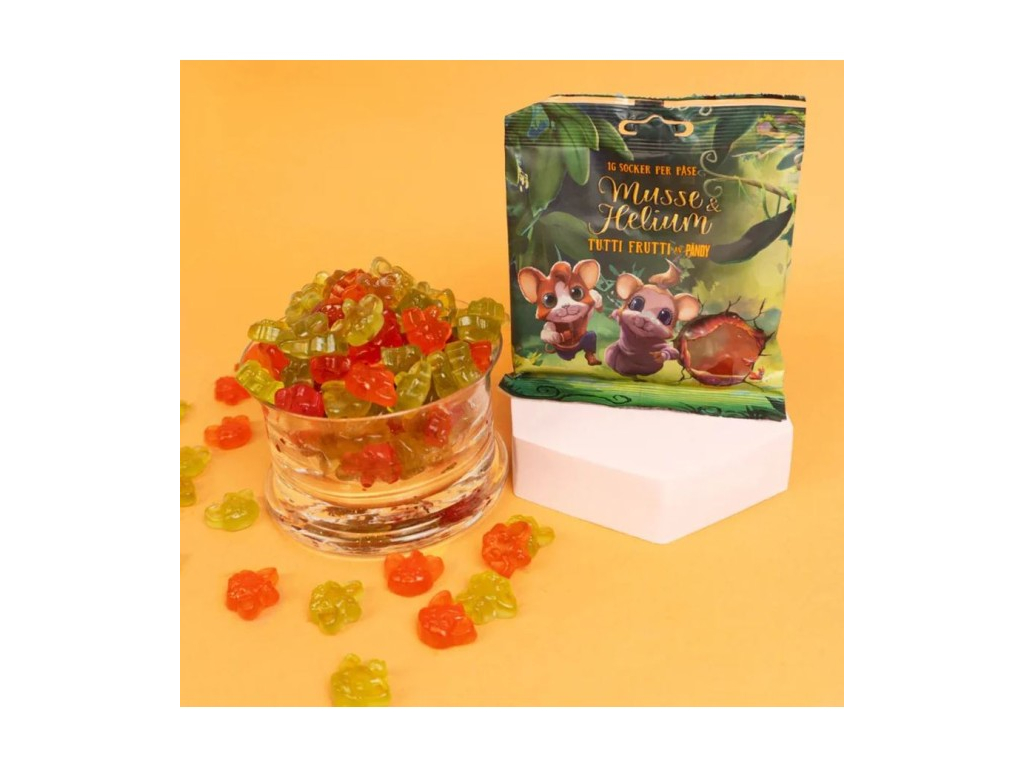 Žuvacie cukríky Pandy Tutti Frutti prinášajú farebnú zmes ovocných chutí v nízkosacharidovom maškrtení, s iba 1 gramom cukru na vrecko bez toho, aby to malo negatívny vplyv na skvelú chuť. Tieto lahodné žuvacie cukríky sú ideálne pre tých, ktorí milujú sladkú ovocnú maškrtu bez pridaného cukru, čím môžu všetci milovníci sladkostí znížiť príjem cukru. Vďaka širokej škále príchutí v každom vrecku sú Pandy Tutti Frutti skvelé na maškrtenie kedykoľvek, keď si chcete dopriať ovocnú dávku bez výčitiek svedomia.