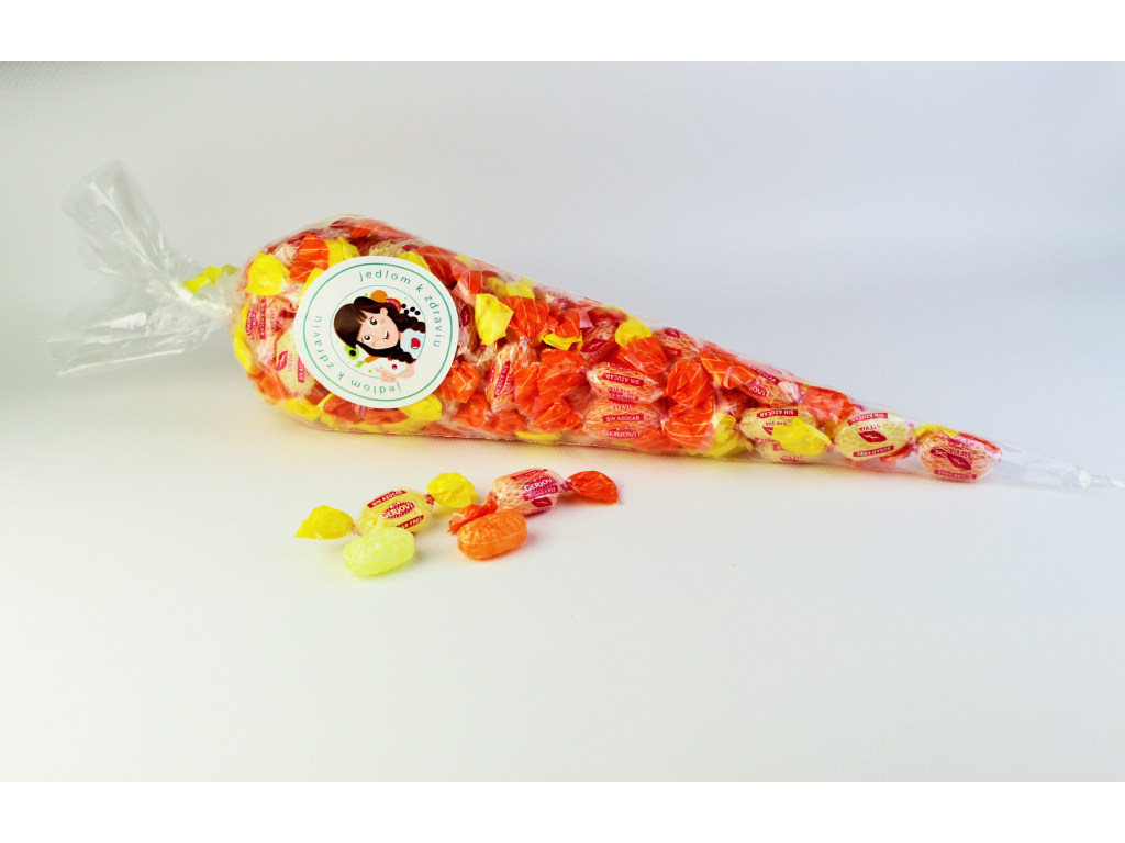 Zloženie: | Isomalt, maltitolový sirup, regulátor kyslosti: kyselina citrónová, aróma, sladidlo: glykozidy steviolu, farbivá:E110 a E102 |