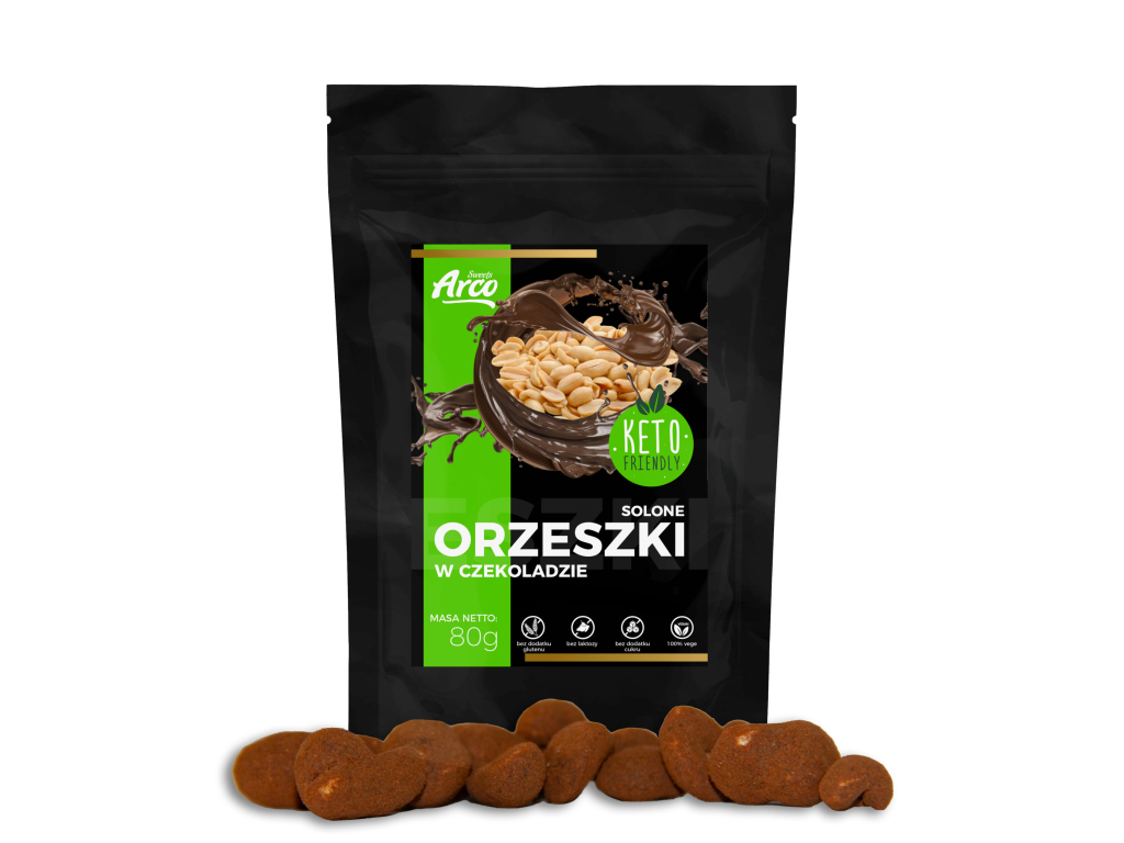 Solené arašidy v čokoláde bez cukru - 80g (PL)